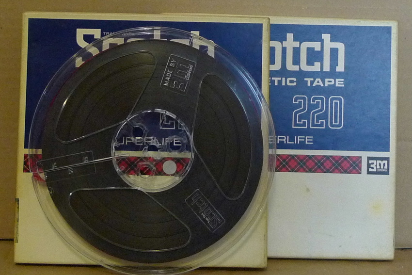 2570) 2 bobine Scotch 220 con ciascuna 720 metri di nastri cancellati, munite di custodie originali in cartone