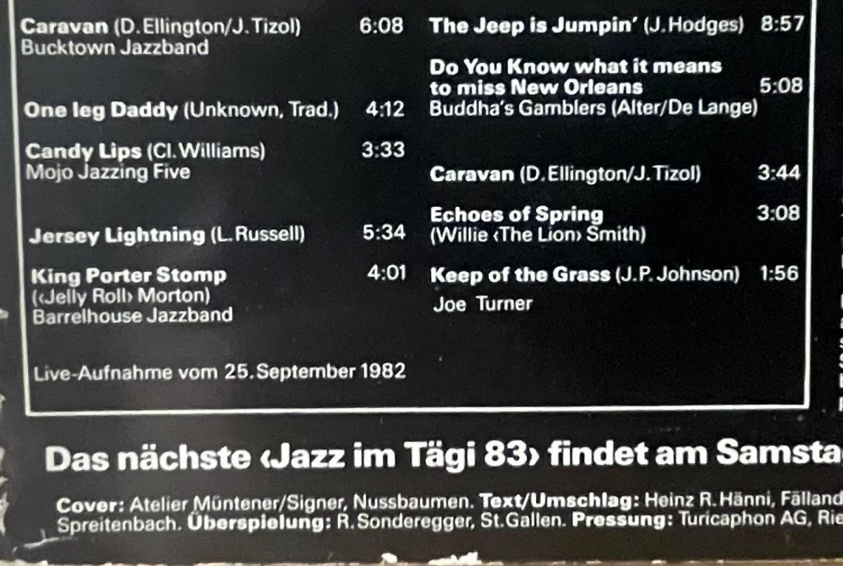 Artisti: Duke Ellington - CI Williams - L. Russell - Barrehouse Jazzbad - J. Hodges - New Orleans J.B. Willie Smith - J.P. Johnson. Alcuni 2 volte.