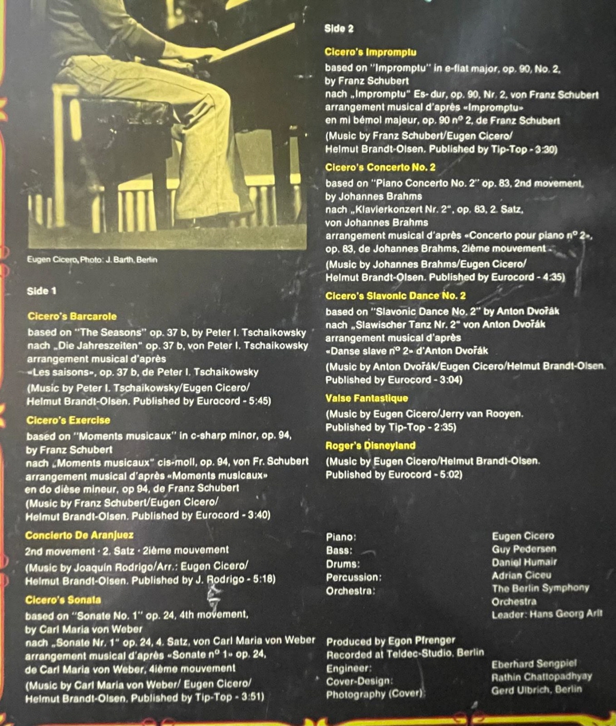 Musiche di Tschaikowsky - Schubert - Rodrigo - Von Weber - Dvorak tutta arrangiate dall stesso Cicero.