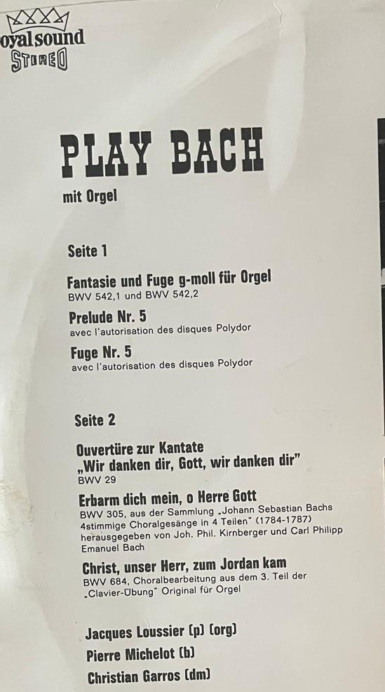 Jacuqes Loussier Play Bach Club Edition Ex Libris - Decca Royal Sound.